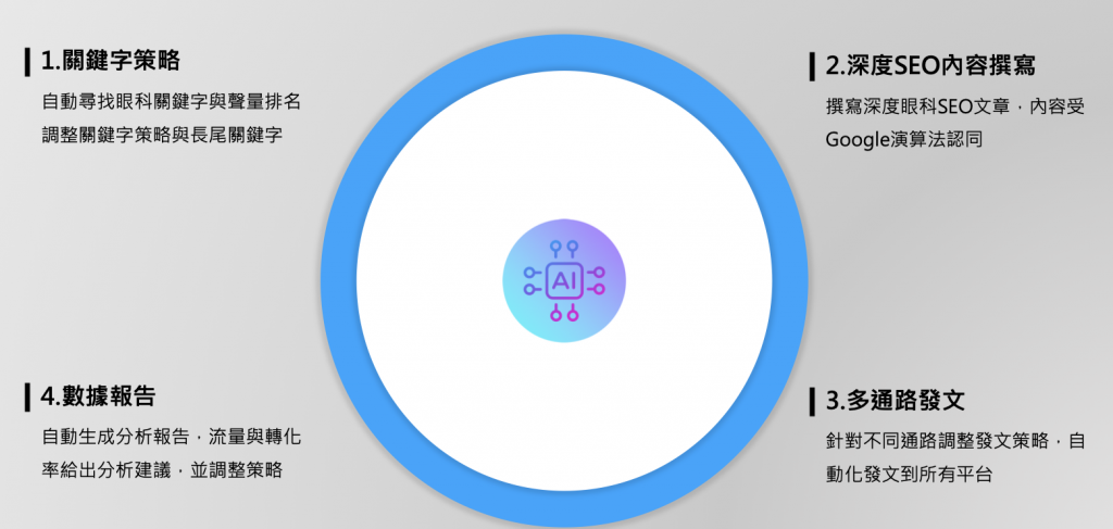 SEO 自動優化,讓你的網站內容自動分析、關鍵字佈局、結構調整一次到位,持續提升搜尋排名,輕鬆吸引更多潛在客戶上門。